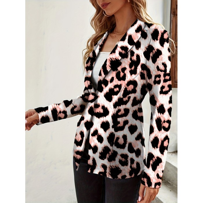 Leopard Print One Button Blazer, Casual Lapel Long Sleeve Outerwear, Women's Clothing