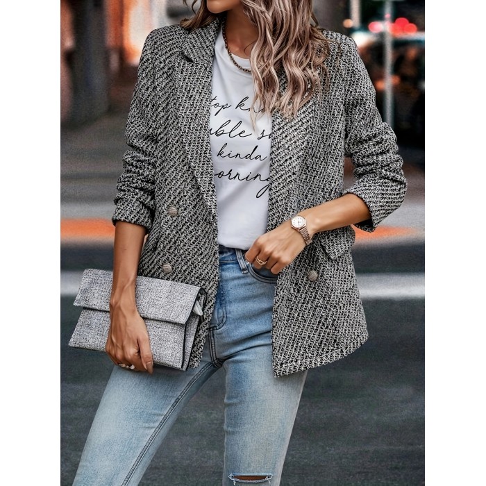 Double Breasted Lapel Blazer, Elegant Long Sleeve Blazer For Office & Work, Women's Clothing