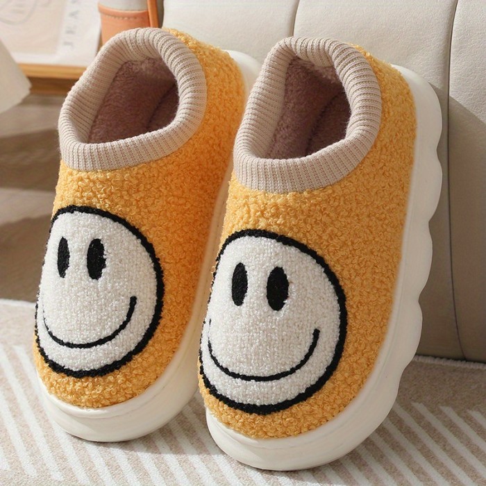 Cute Smile Face Fuzzy House Slippers, Closed Toe Memory Foam Slip On Shoes, Winter Warm Home Slippers